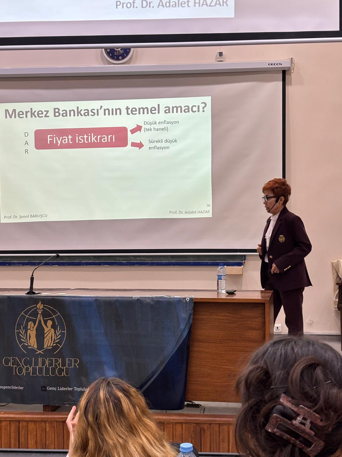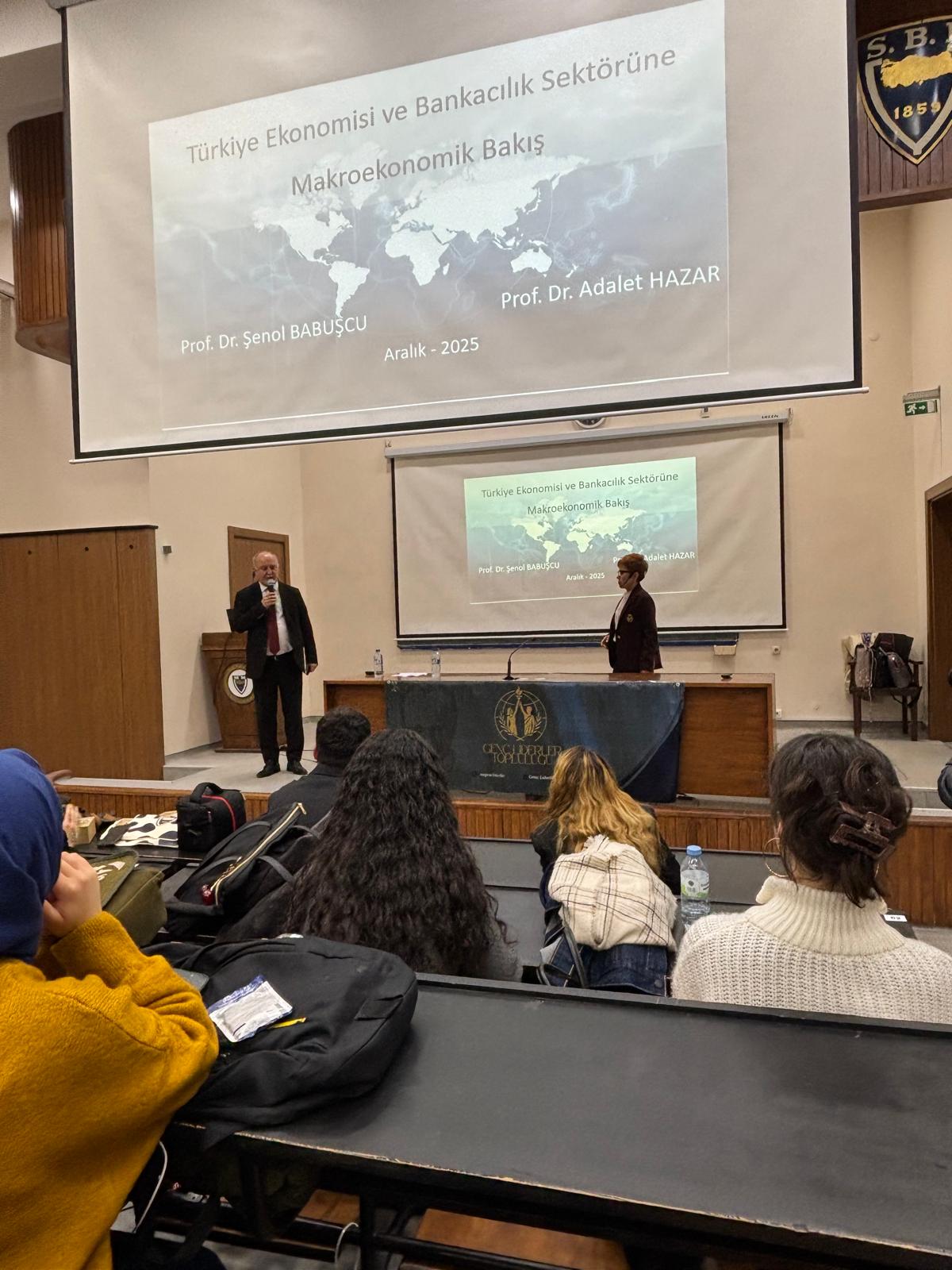 Etkinlikte topluluk üyesi öğrencilere Türkiye Ekonomisi ve Bankacılık Sektörü hakkında bilgi aktarılmıştır.